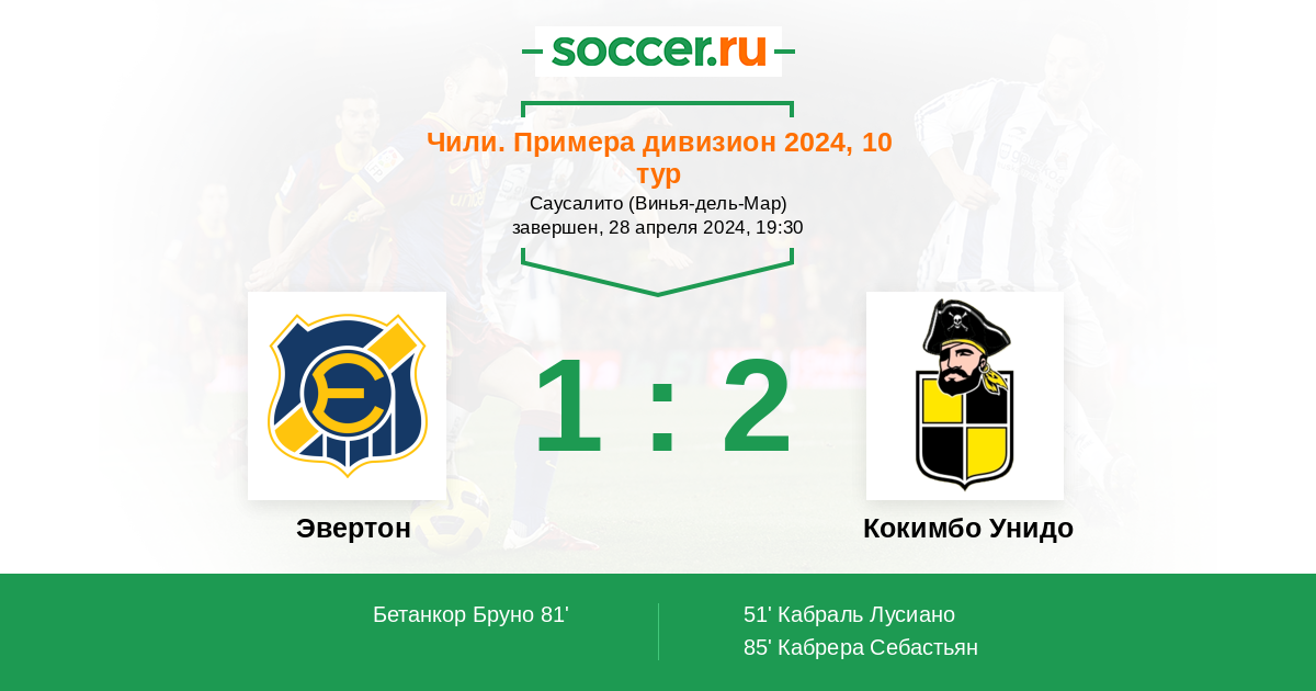 Протокол матча Эвертон против Кокимбо Унидо