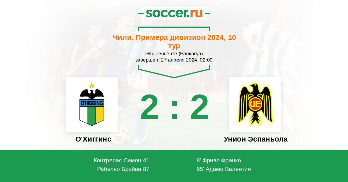 Протокол матча О'Хиггинс против Унион Эспаньола
