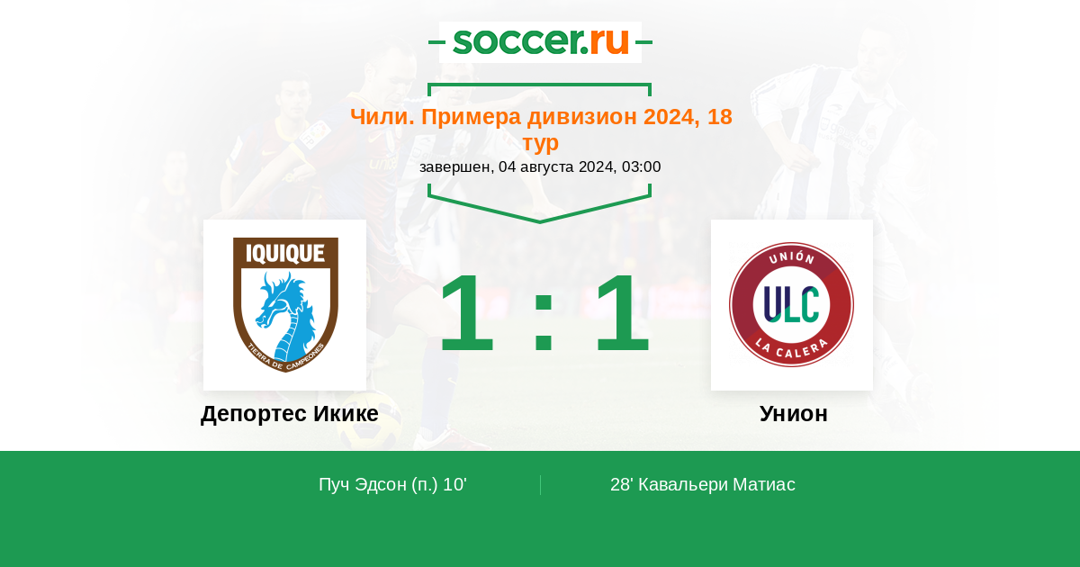 Протокол матча Депортес Икике против Унион