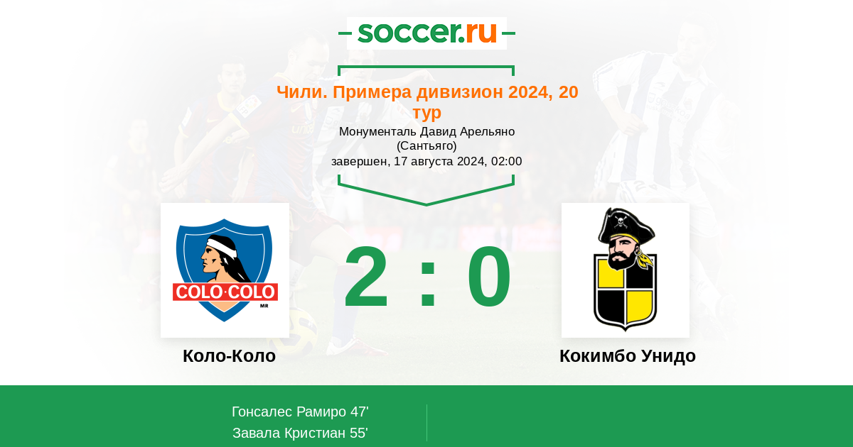 Протокол матча Коло-Коло против Кокимбо Унидо