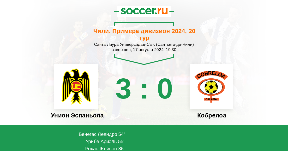 54' (1:0) Бенегас Леандро (9) (Лейтон Себастьян (33))