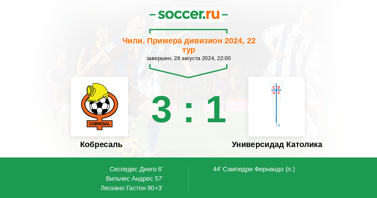 6' (1:0) Сеспедес Диего (28) (Валенсия Леонардо (10))