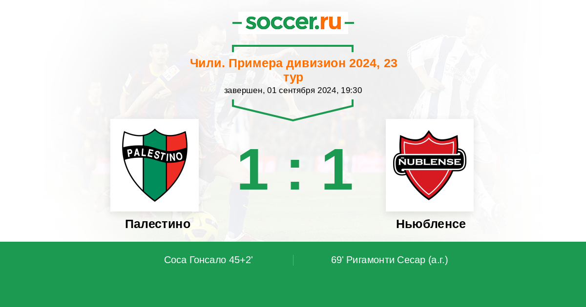 45+2' (1:0) Соса Гонсало (9) (Карраско Брайан (7))