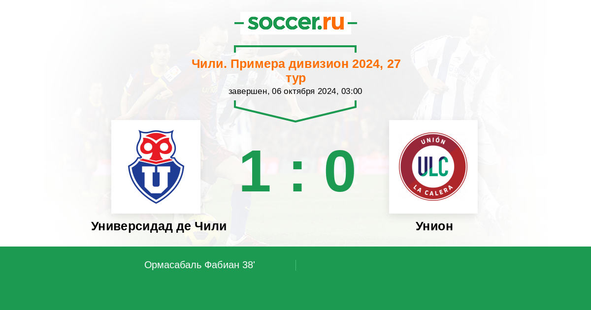 38' (1:0) Ормасабаль Фабиан (17) (Сальдивия Матиас (22))