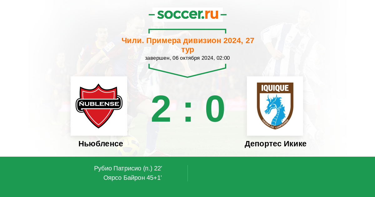 Протокол матча Ньюбленсе против Депортес Икике