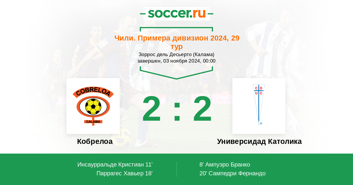8' (0:1) Ампуэро Бранко (17) (Гонслалес Брайан)
