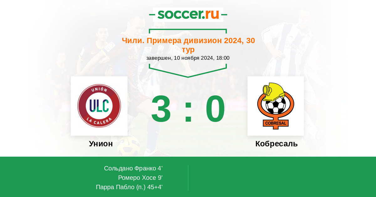 Протокол матча Унион против Кобресаль