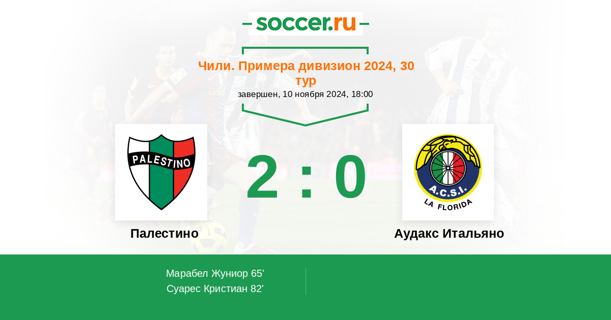 Протокол матча Палестино против Аудакс Итальяно