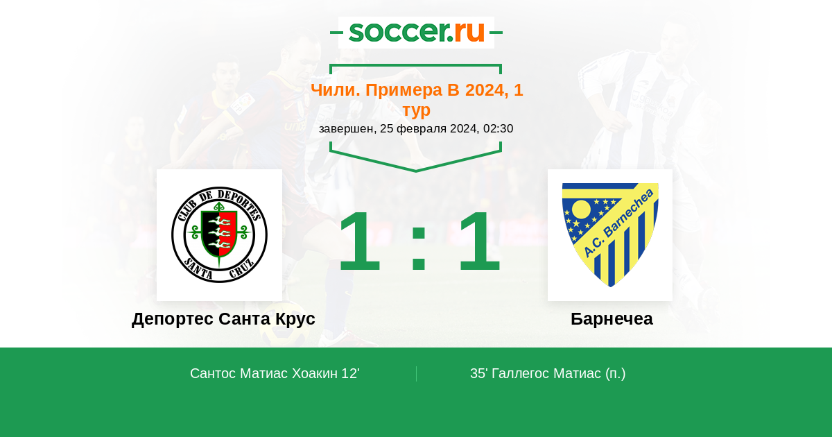 Протокол матча Депортес Санта Крус против Барнечеа