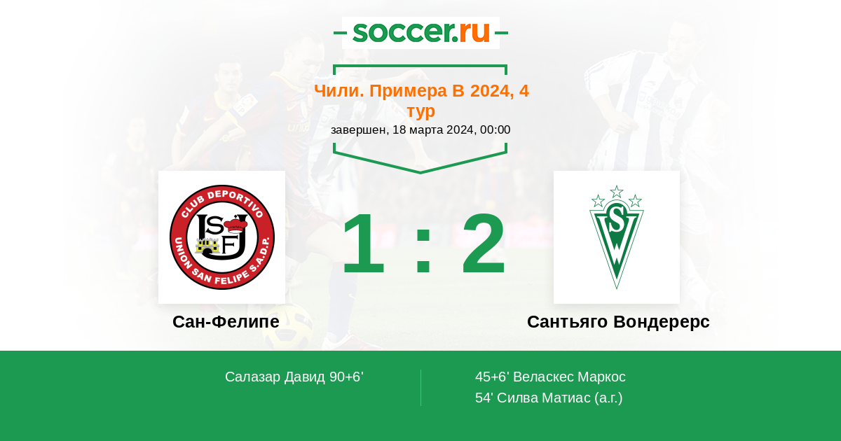 Протокол матча Сан-Фелипе против Сантьяго Вондерерс