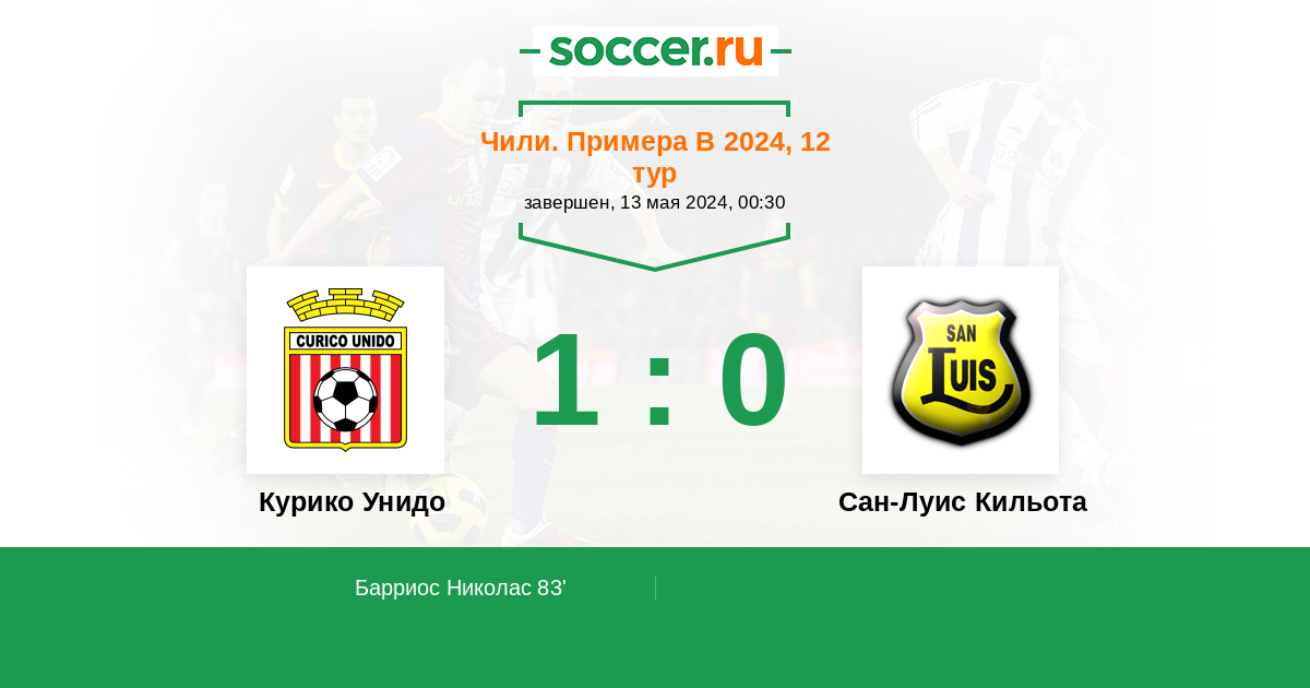 Протокол матча Курико Унидо против Сан-Луис Кильота