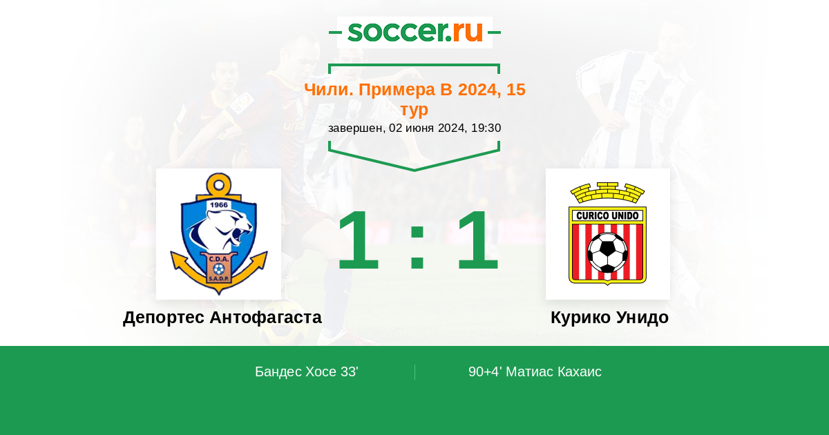 Протокол матча Депортес Антофагаста против Курико Унидо