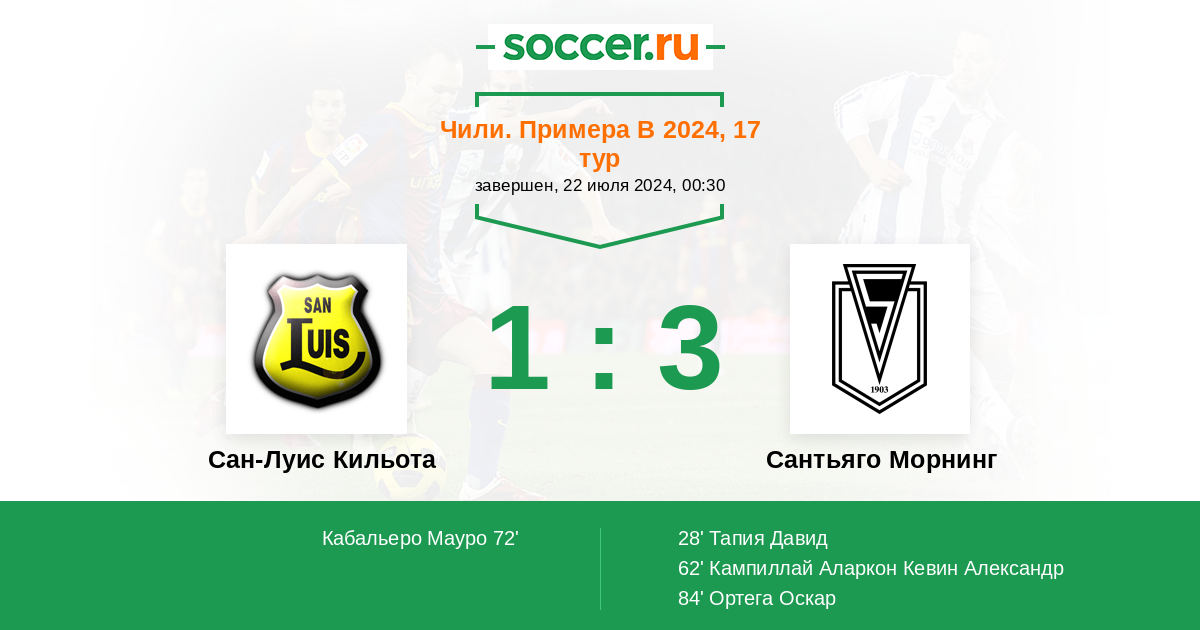 Протокол матча Сан-Луис Кильота против Сантьяго Морнинг