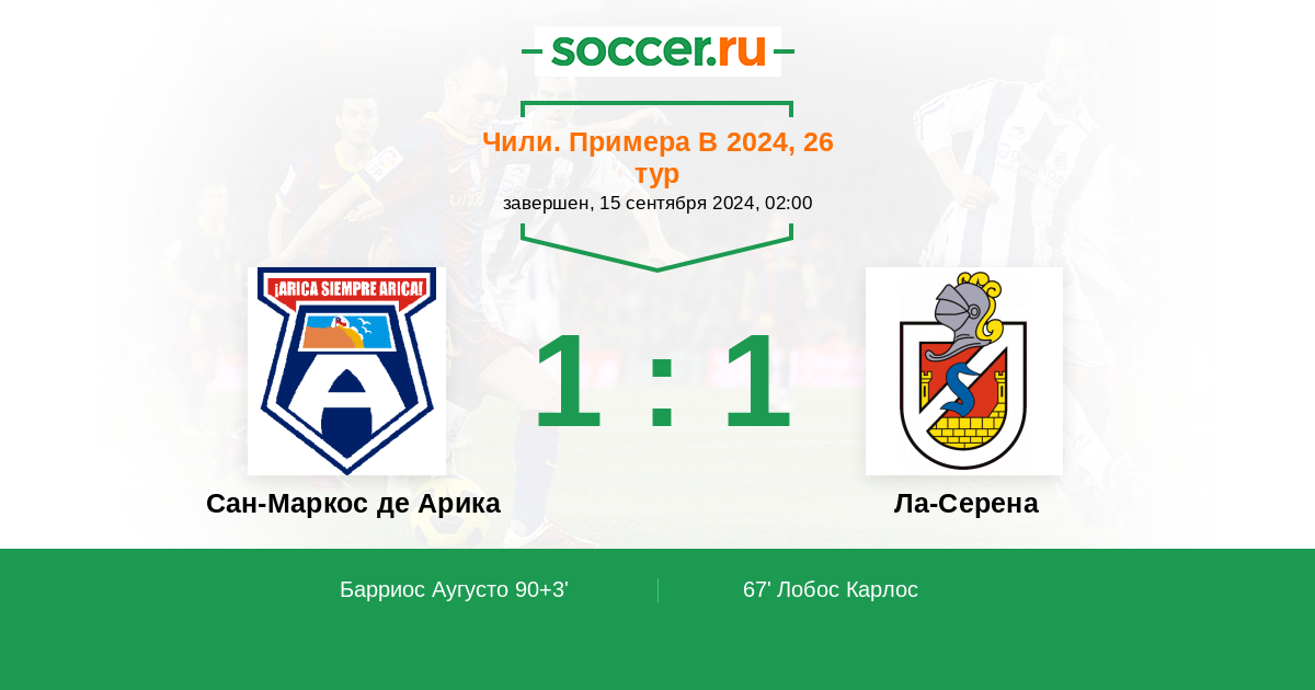 Протокол матча Сан-Маркос де Арика против Ла-Серена