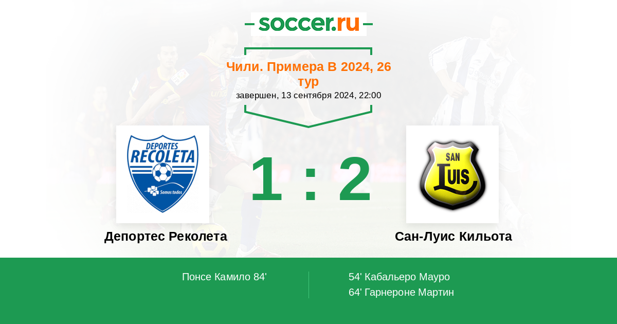 Протокол матча Депортес Реколета против Сан-Луис Кильота
