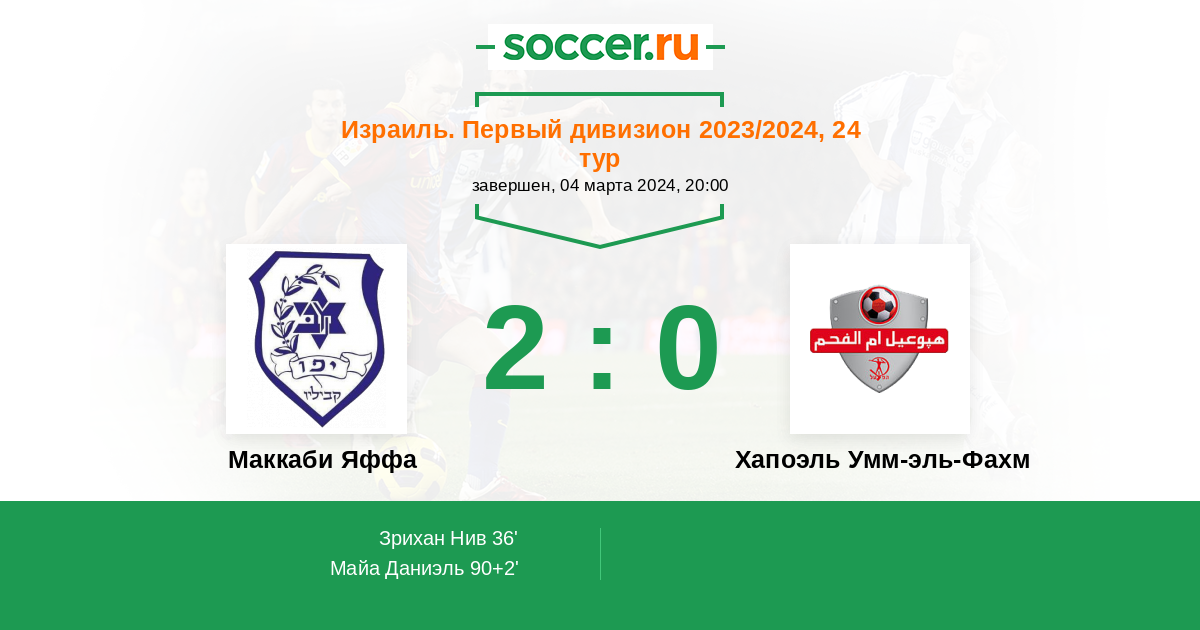 Протокол матча Маккаби Яффа против Хапоэль Умм-эль-Фахм