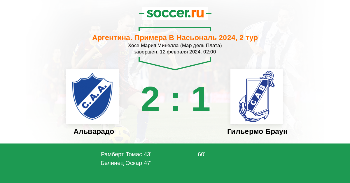 Протокол матча Альварадо против Гильермо Браун
