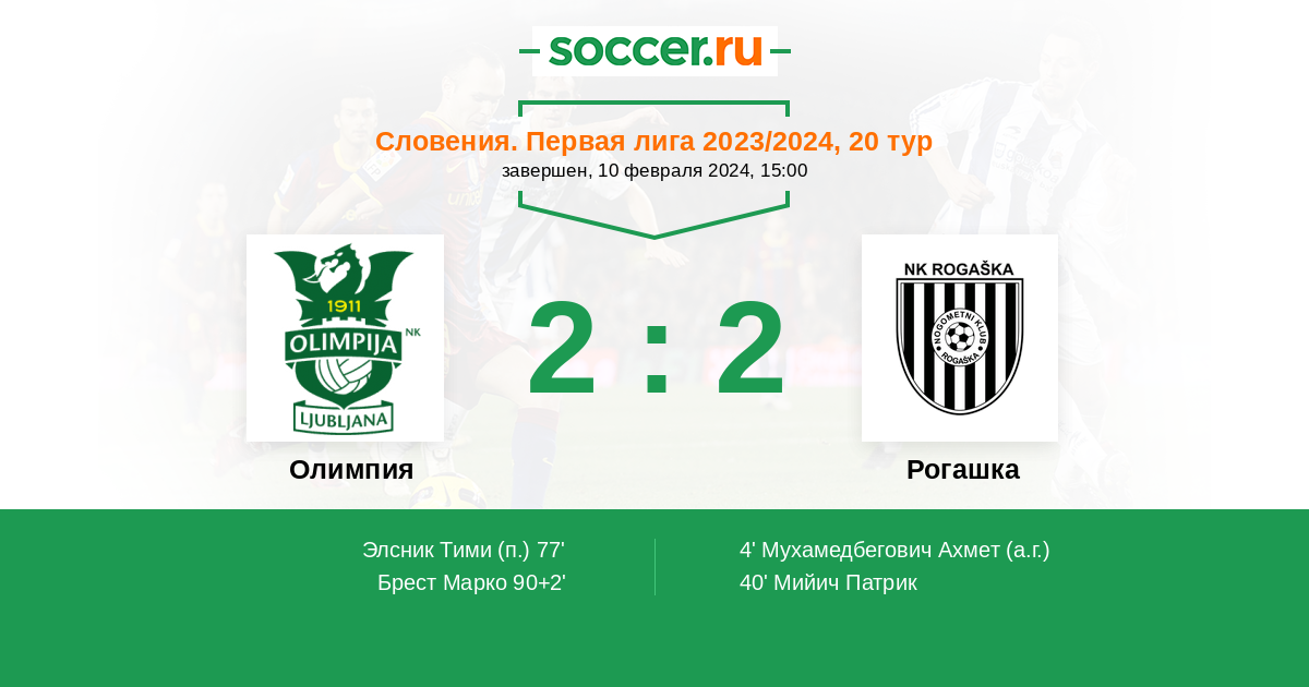 Протокол матча Олимпия против Рогашка