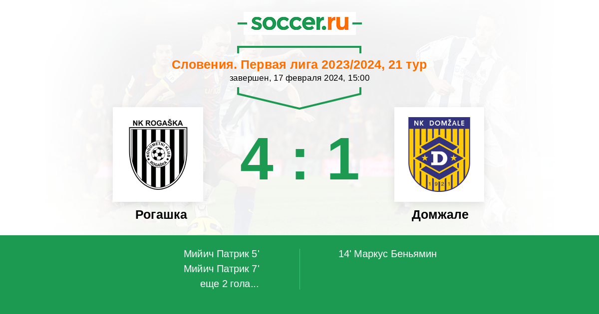 Протокол матча Рогашка против Домжале