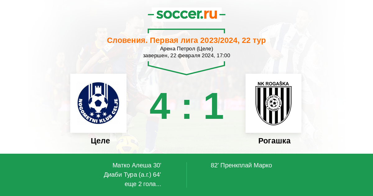 Протокол матча Целе против Рогашка