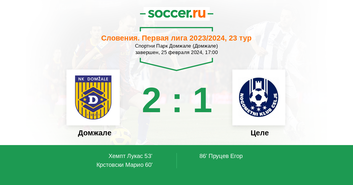 Протокол матча Домжале против Целе