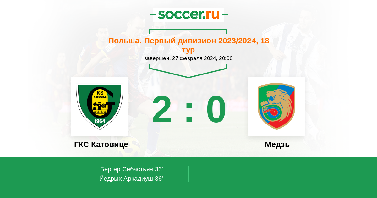 Протокол матча ГКС Катовице против Медзь