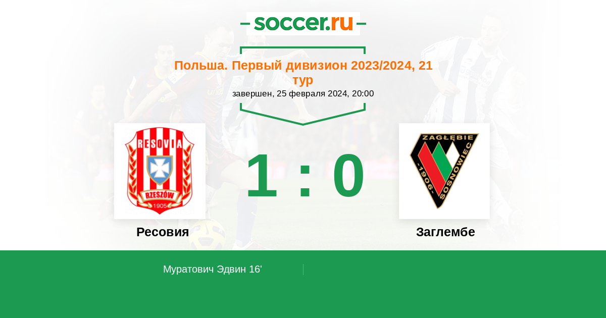 Протокол матча Ресовия против Заглембе