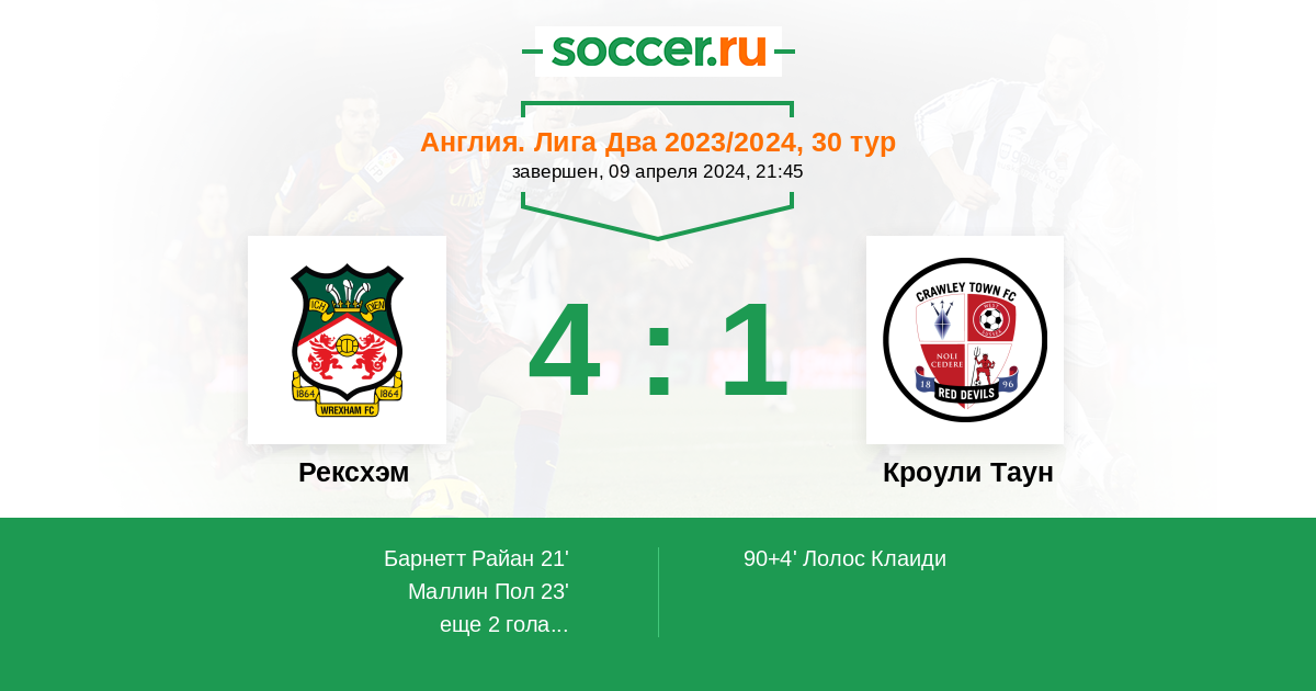 90+4' (4:1) Лолос Клаиди (8) (Роулс Джек (11))