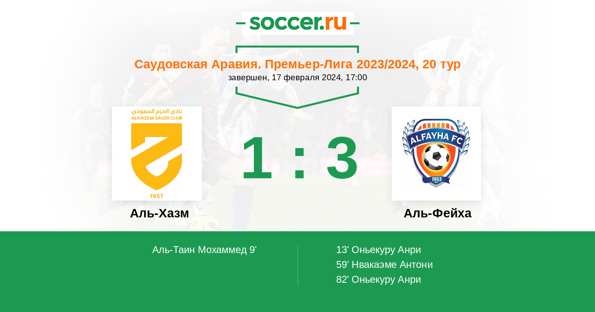 Протокол матча Аль-Хазм против Аль-Фейха