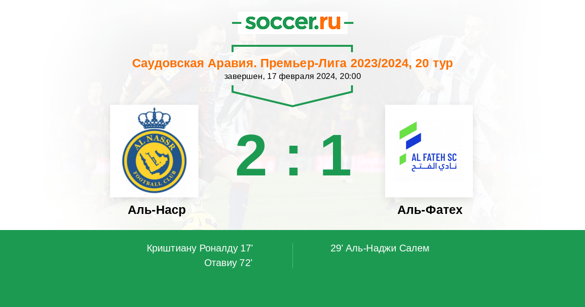 Протокол матча Аль-Наср против Аль-Фатех