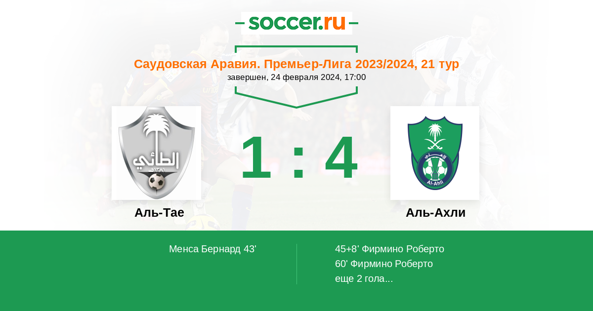 60' (1:2) Фирмино Роберто (10) (Аль-Бурайкан Фирас (20))