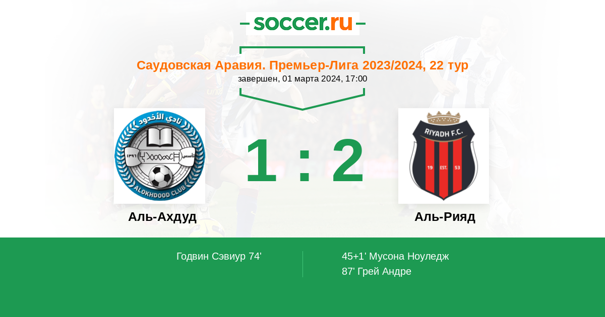 Протокол матча Аль-Ахдуд против Аль-Рияд
