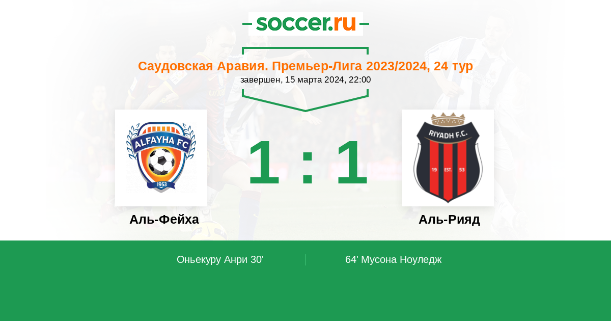 Протокол матча Аль-Фейха против Аль-Рияд