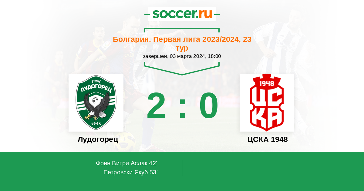 Протокол матча Лудогорец против ЦСКА 1948