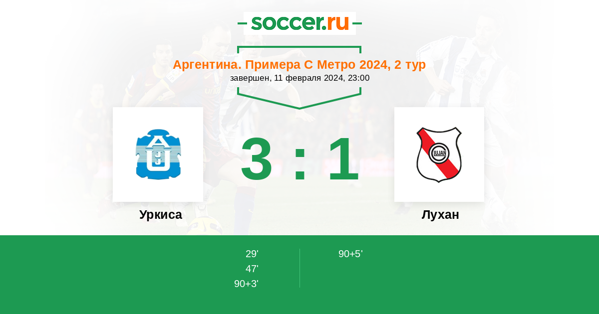 Протокол матча Уркиса против Лухан