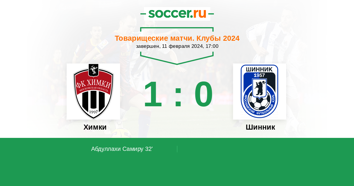 Протокол матча Химки против Шинник
