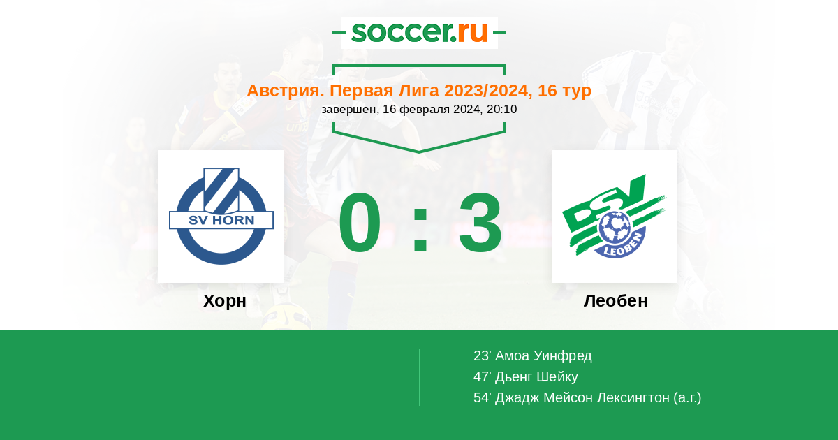 Протокол матча Хорн против Леобен