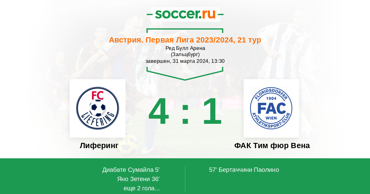 Протокол матча Лиферинг против ФАК Тим фюр Вена