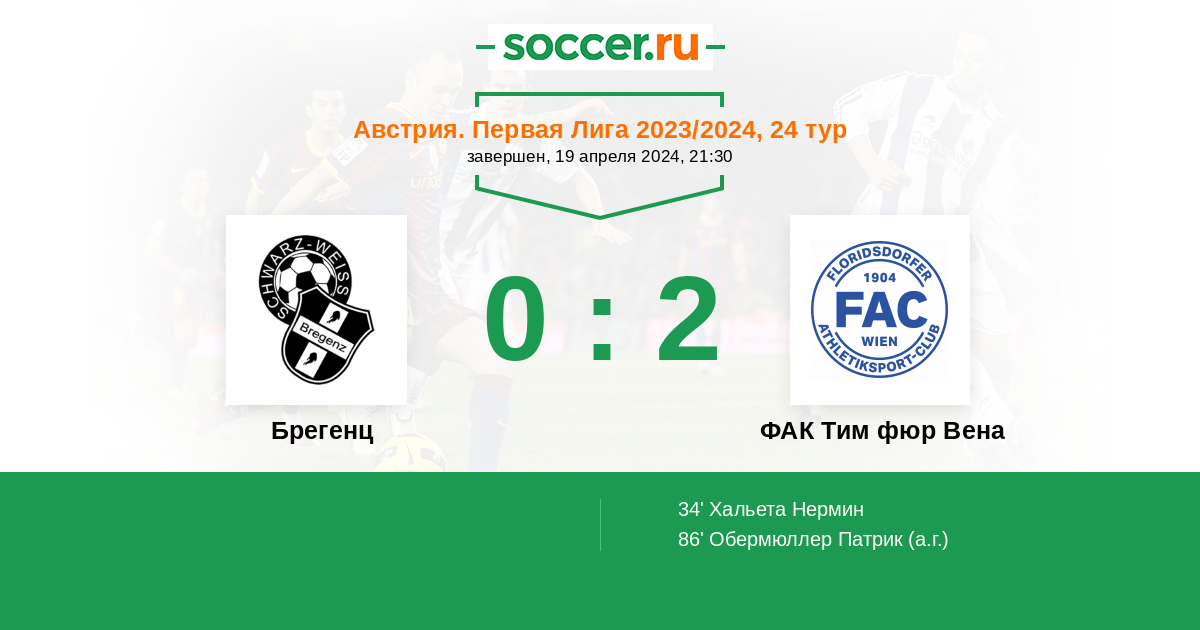 Протокол матча Брегенц против ФАК Тим фюр Вена