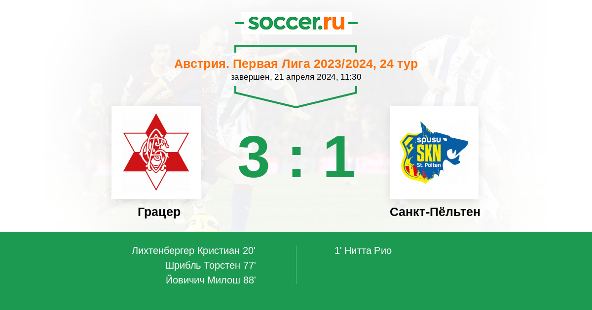 Протокол матча Грацер против Санкт-Пёльтен