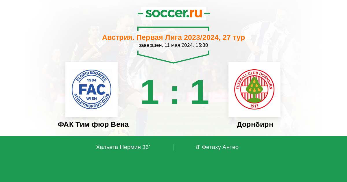 Протокол матча ФАК Тим фюр Вена против Дорнбирн