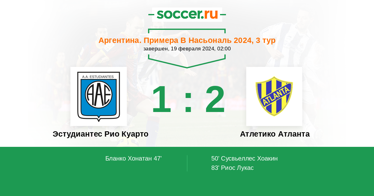 Протокол матча Эстудиантес Рио Куарто против Атлетико Атланта