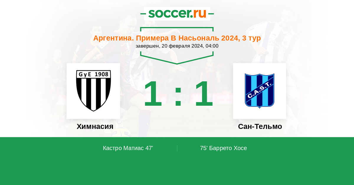 Протокол матча Химнасия против Сан-Тельмо