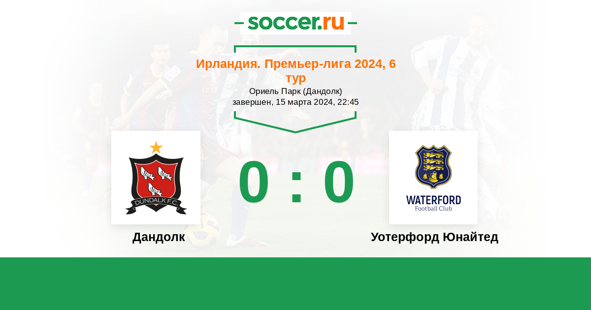 Протокол матча Дандолк против Уотерфорд Юнайтед