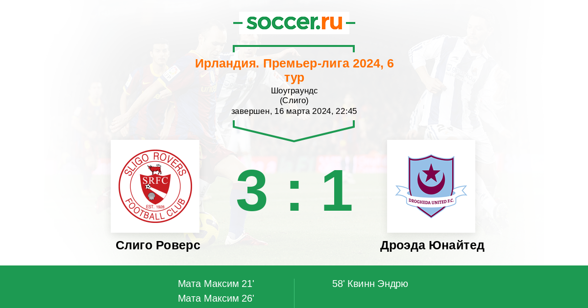 Протокол матча Слиго Роверс против Дроэда Юнайтед