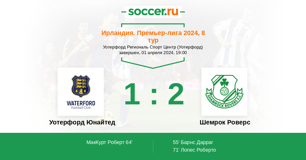 Протокол матча Уотерфорд Юнайтед против Шемрок Роверс