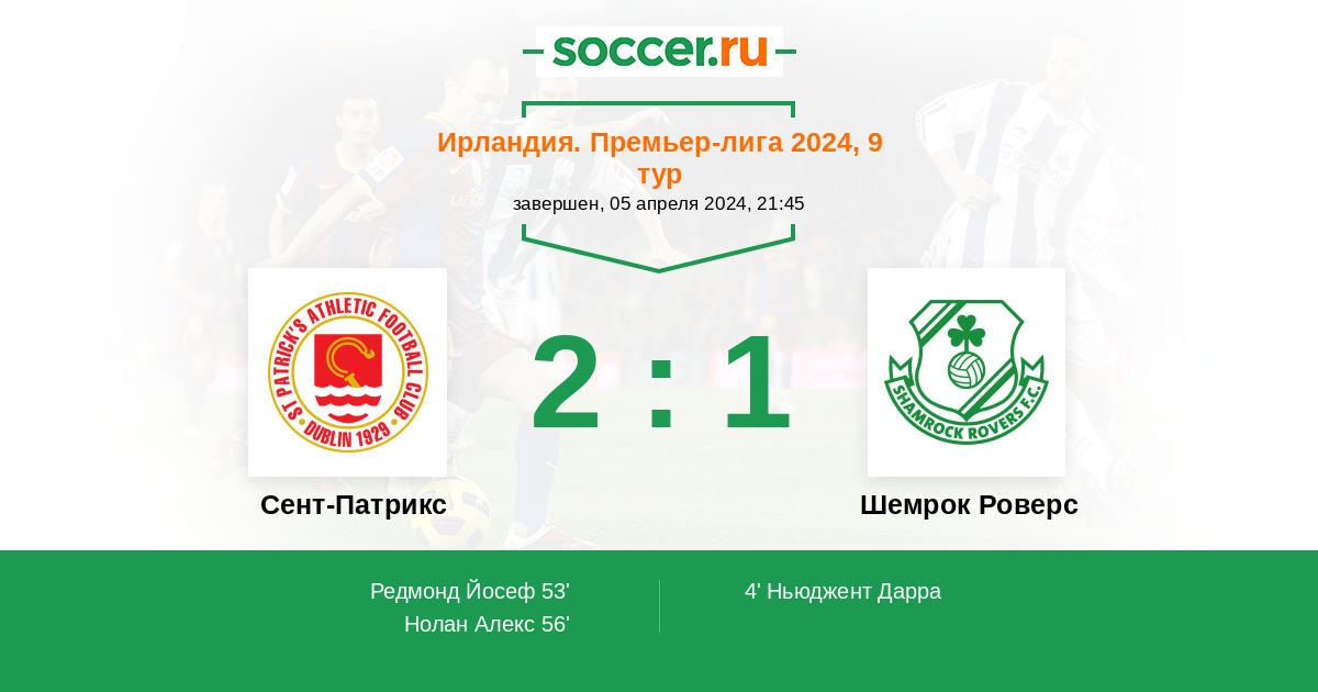 Протокол матча Сент-Патрикс против Шемрок Роверс