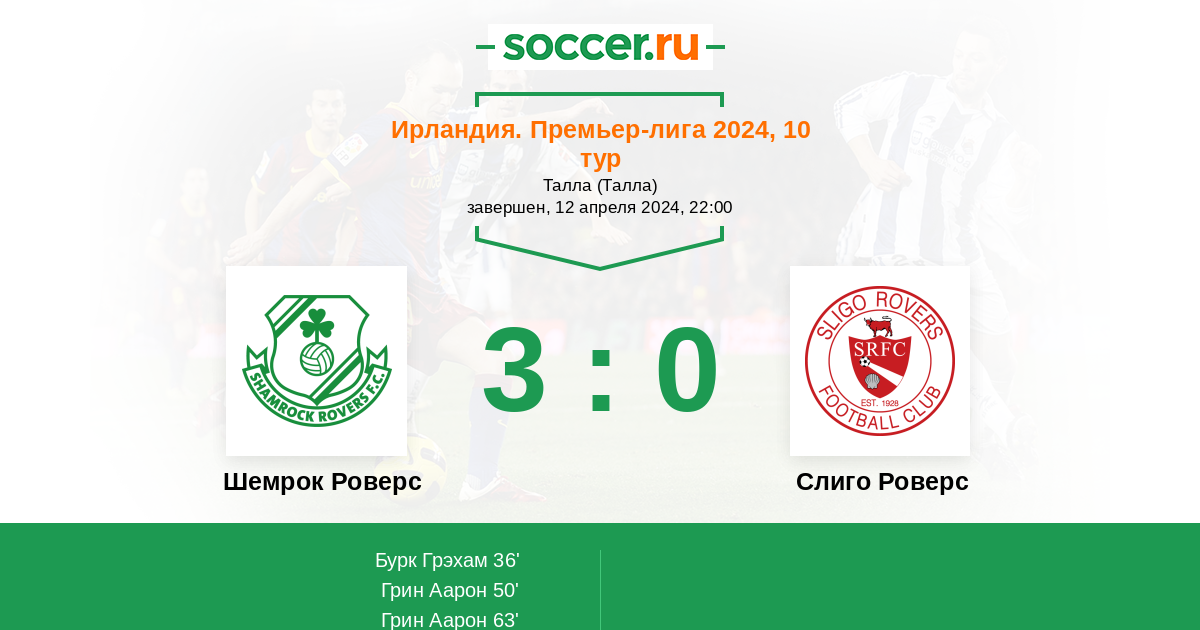 Протокол матча Шемрок Роверс против Слиго Роверс
