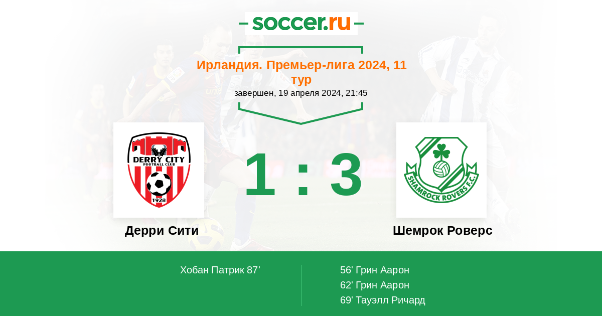 Протокол матча Дерри Сити против Шемрок Роверс