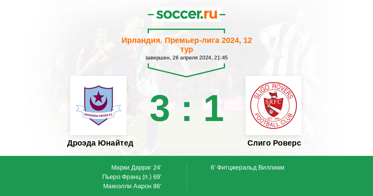Протокол матча Дроэда Юнайтед против Слиго Роверс